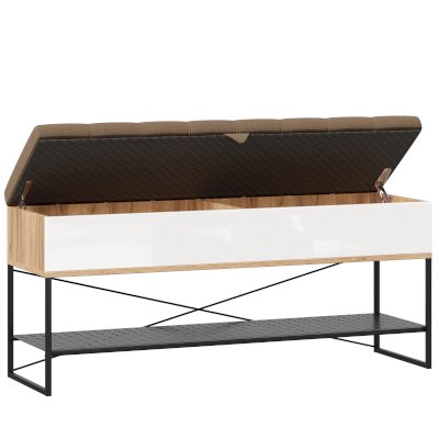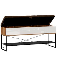 - Крышка (сиденье) откидывается на кронштейнах, под сиденьем короб высотой 150 мм с двумя отделениями для хранения