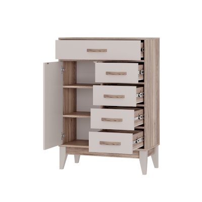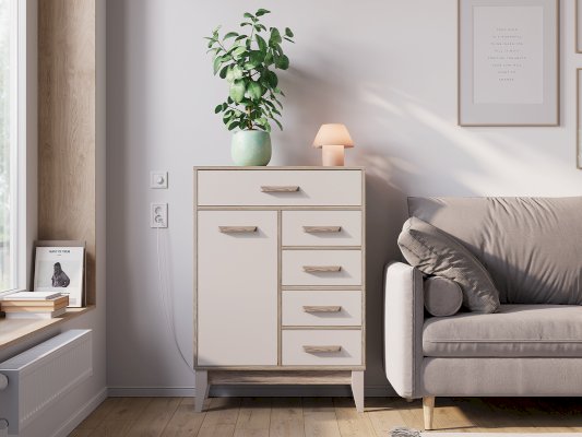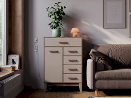 Комод «Скандика» КмМ-13 – это компактная, но вместительная модель для гостиной или спальни. Благодаря вытянутой форме комод можно разместить на небольшом пространстве – например, возле дивана. Комод укомплектован четырьмя ящиками и отсеком с дверцей. В этой модели можно организовать несколько зон хранения, в ней поместятся и мелочи для рукоделия, и документы, и одежда. Створка плотно фиксируется на магнитах.