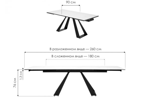 Длина в разложенном виде: 2600 мм